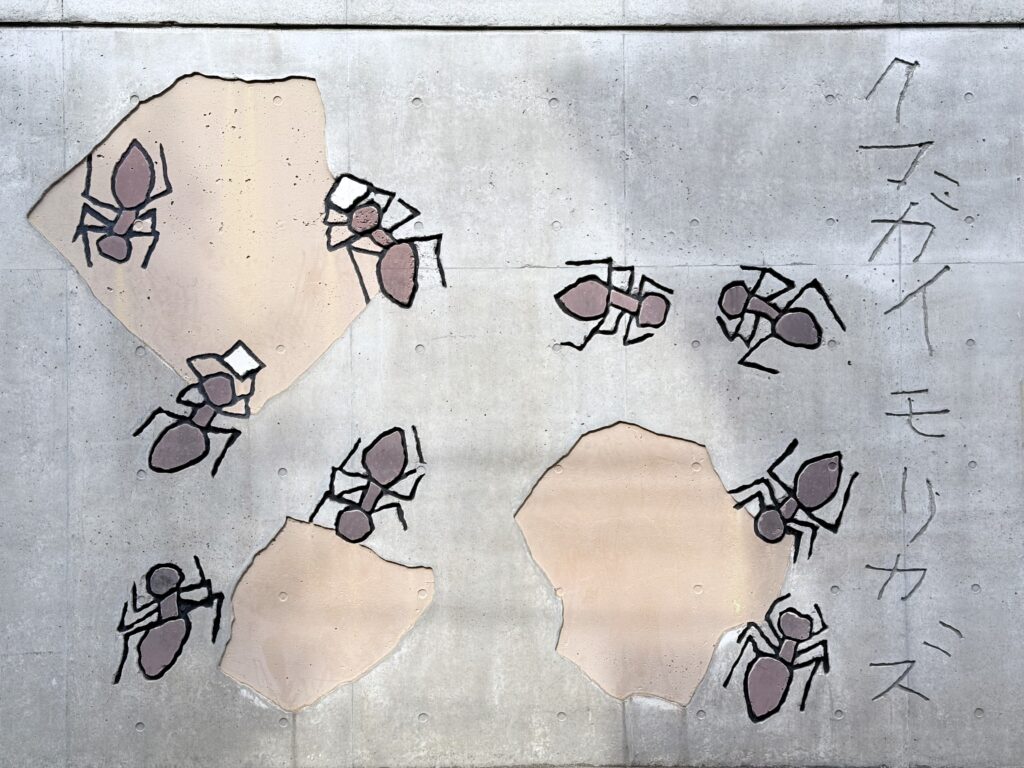 On the exterior wall, visitors will find a charming relief of ants by Kumagai Morikazu, filled with energy and movement, as if they might begin crawling at any moment. The work naturally draws the attention of passersby. In addition, sculptural works by his daughter Kaya Kumagai, herself an artist, are also displayed on the museum grounds.